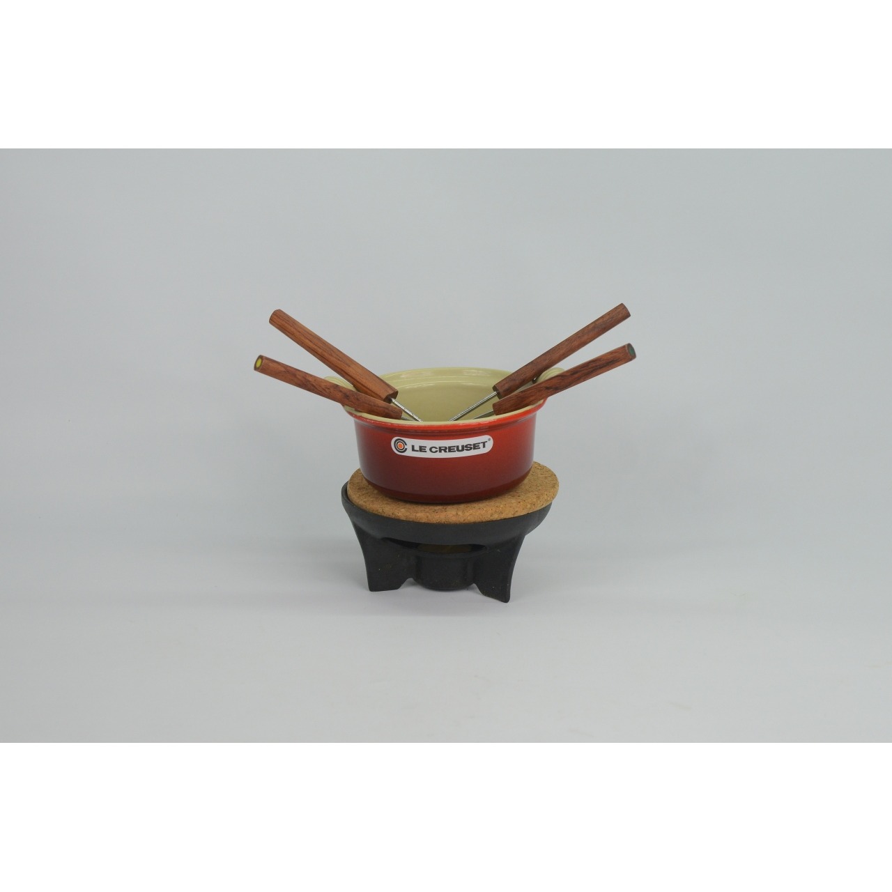Panela vintage para Fondue em ferro fundido esmaltado. Marca francesa "Le Creuset". Século XX