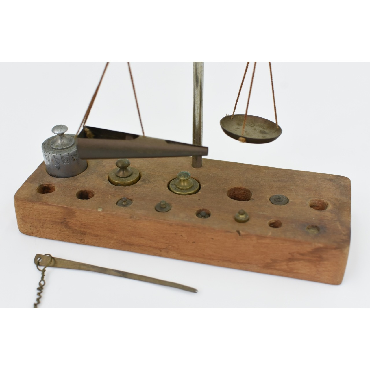 Antiga balança de precisão para pedras preciosas, estão em falta alguns pesos.