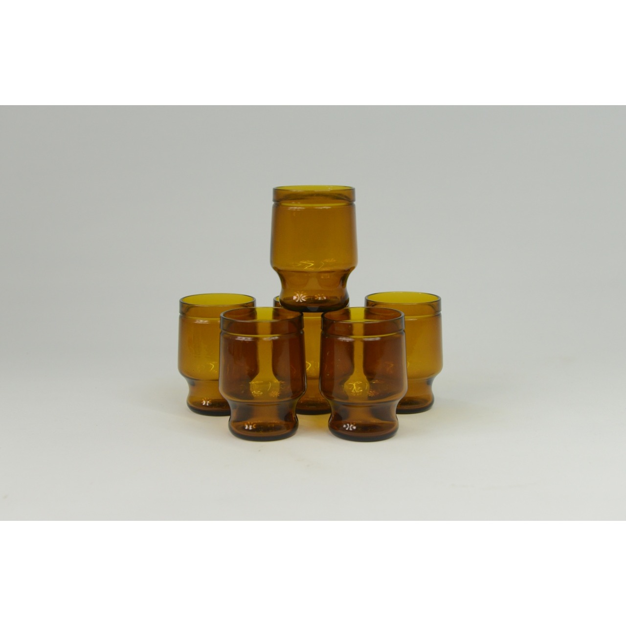 Conjunto de 6 copos de vidro ambar, vintage