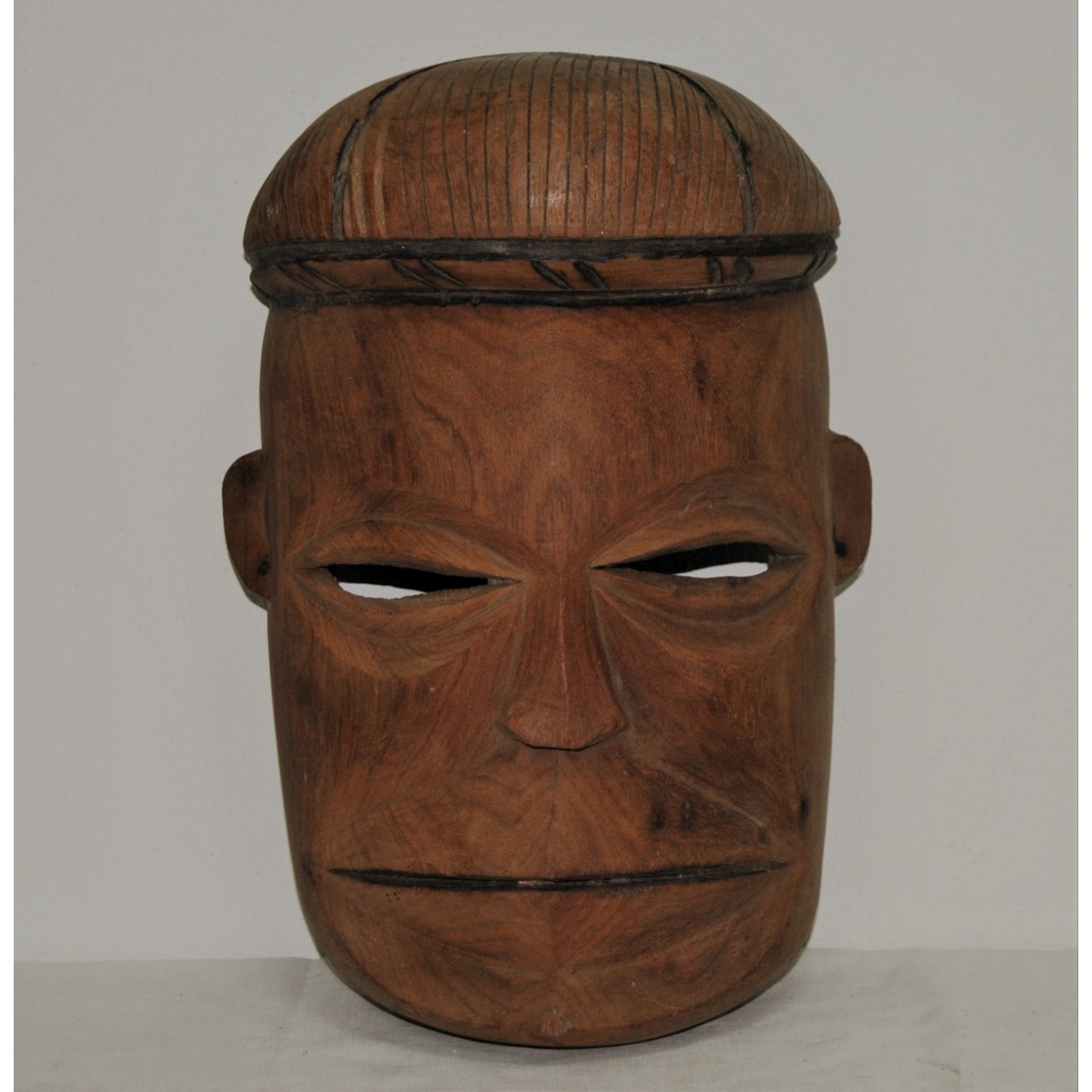 Grande máscara, artesanato africano esculpido em madeira. Sem assinatura. Século XX.