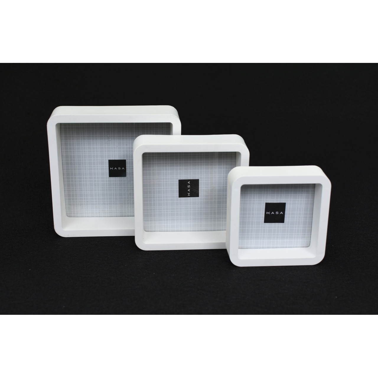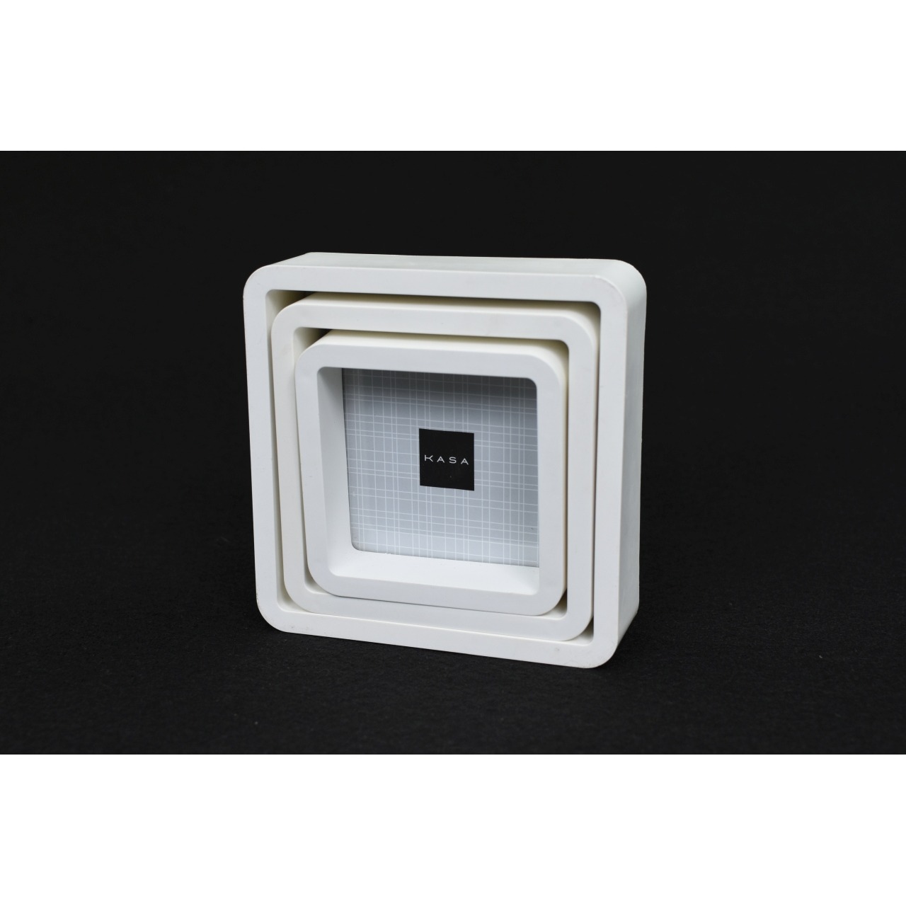 Moldura Kasa em plástico branco composto por 3 molduras quadradas em vários tamanhos