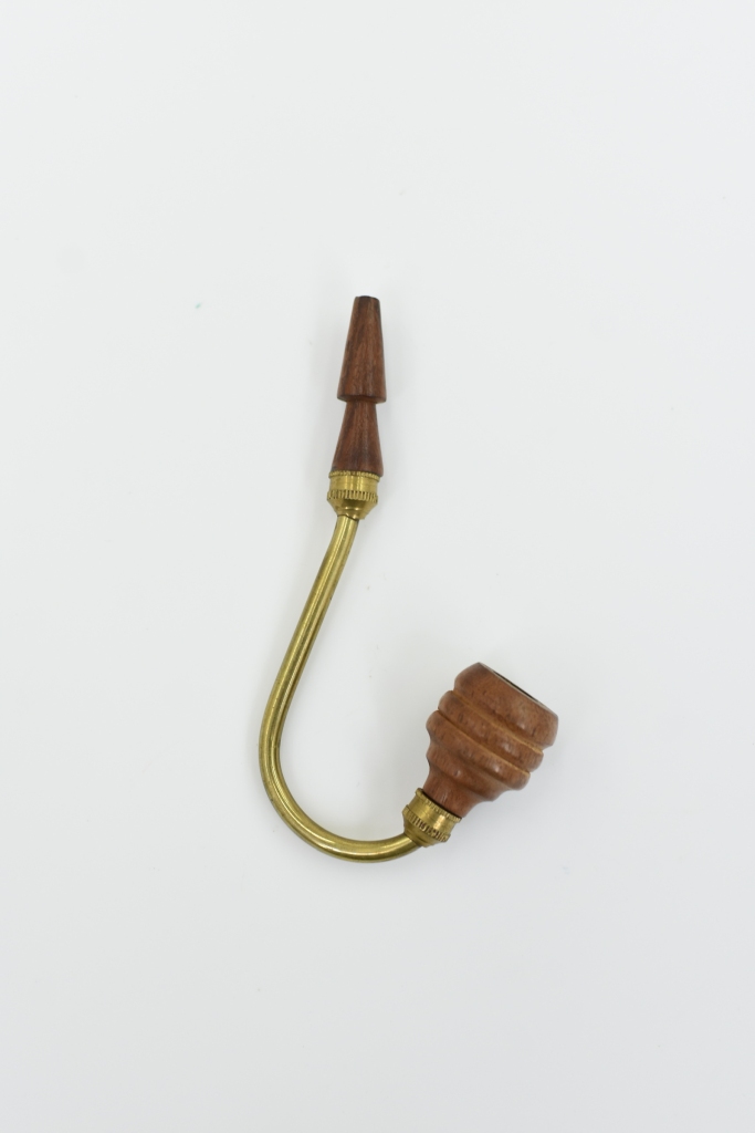 Cachimbo em metal dourado com bocal e fornalha em madeira