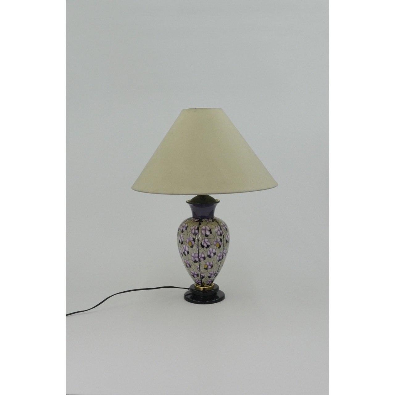 Candeeiro de mesa em cerâmica vidrada. Com abat-jour incluído. Electrificado