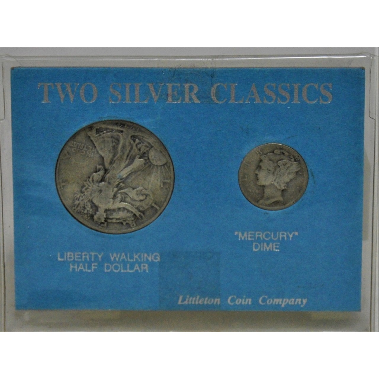 Duas moedas de prata clássicas (Two Silver Classics). Com a indicação Littleton Coin Co. Origem: U.S.A.