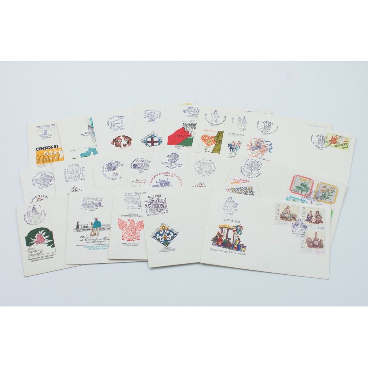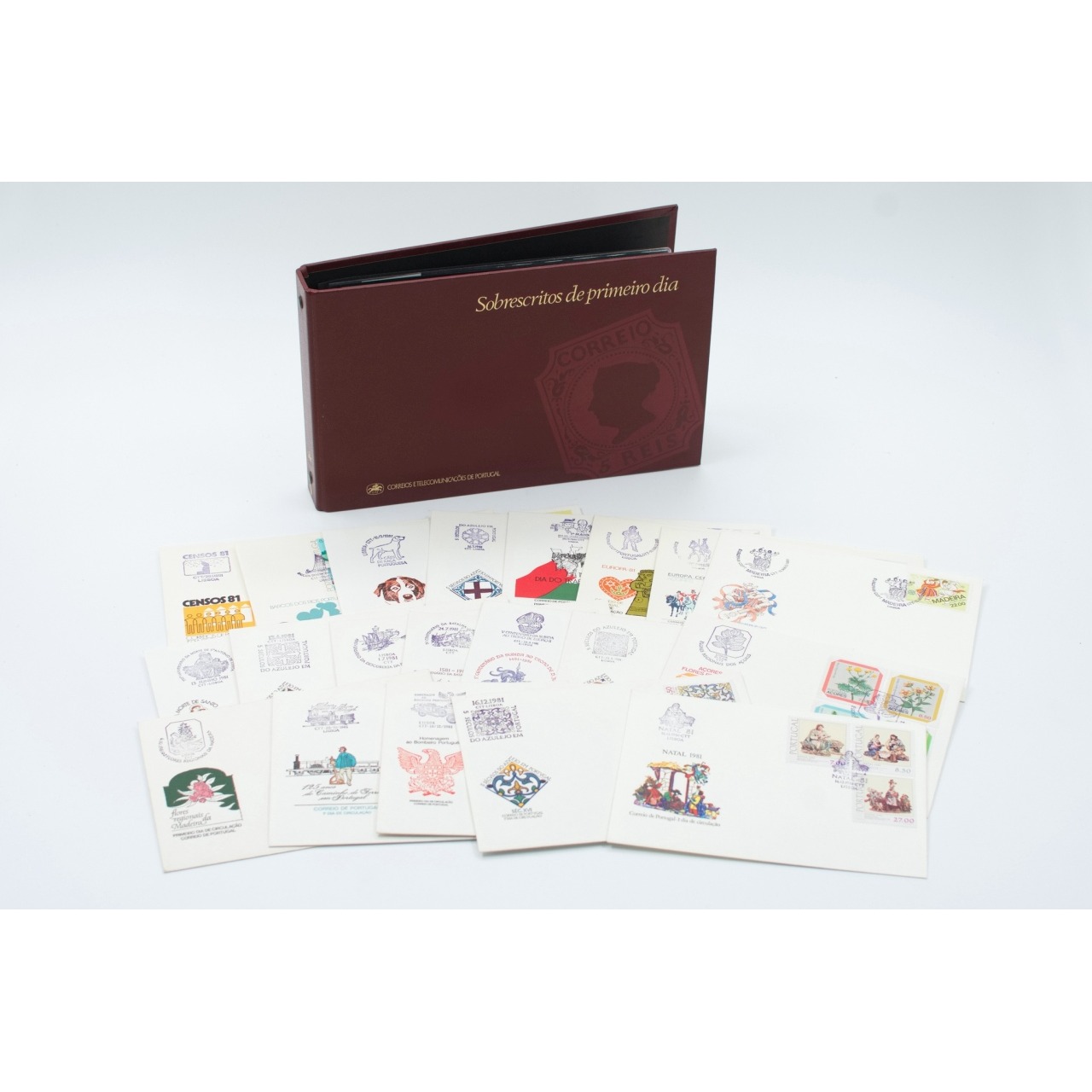 Coleção de 21 sobrescritos FDC, respetivos selos virgens e pagelas emitidos pelos CTT, relativamente ao ano de 2001, em excelentos condições e apresentados em album próprio. Valor aproximado do catálogo 220 €
