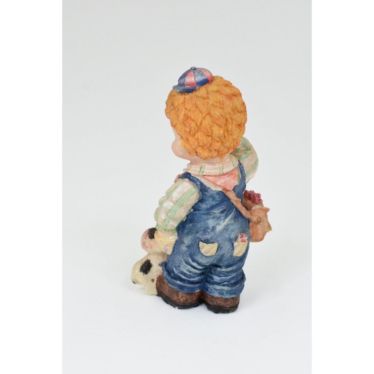 Bibelô de rapaz com sacola e cachorro