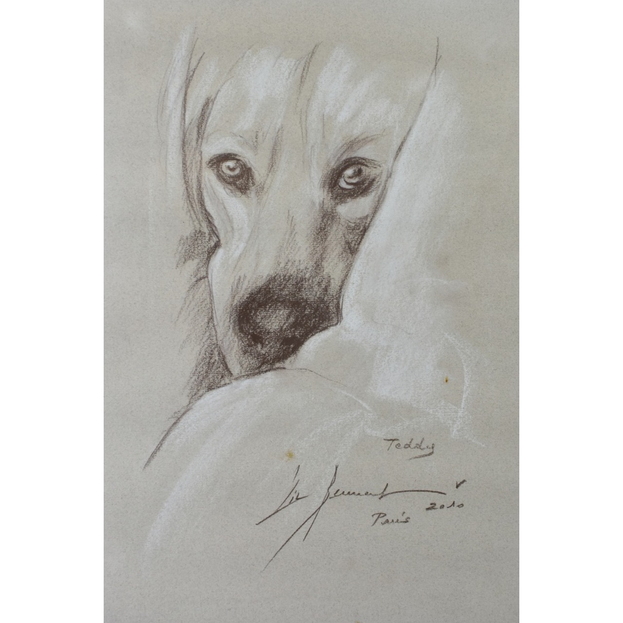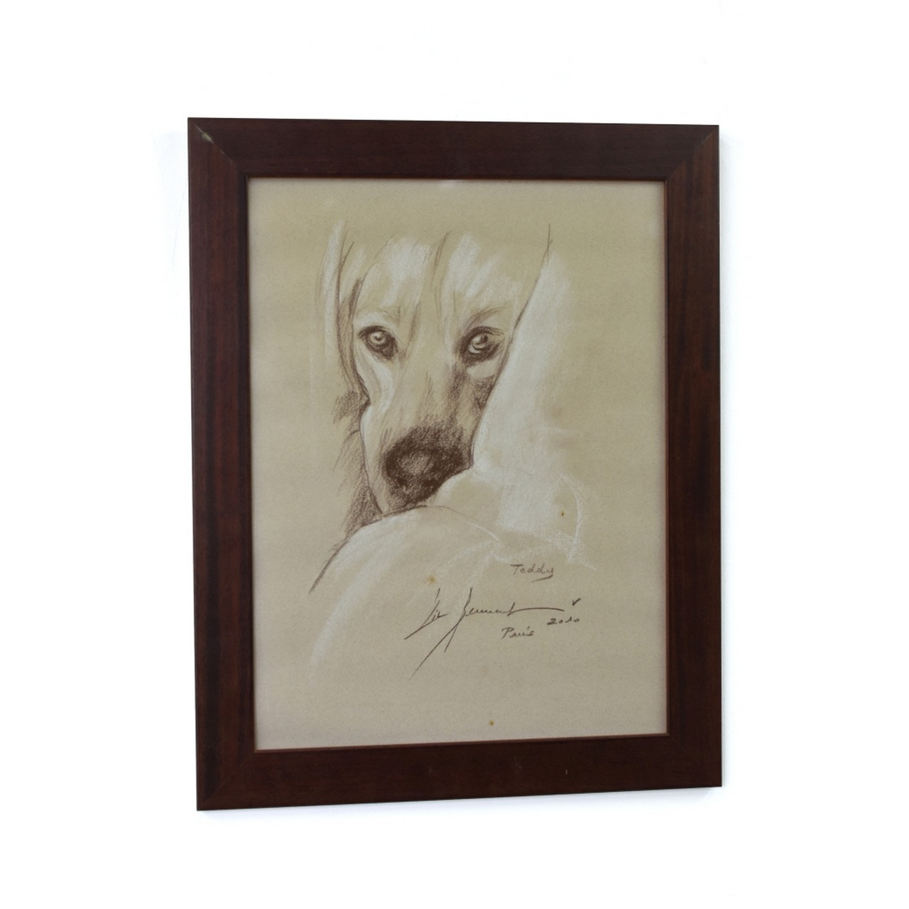 Desenho sobre papel tema "Cão" assinado com moldura