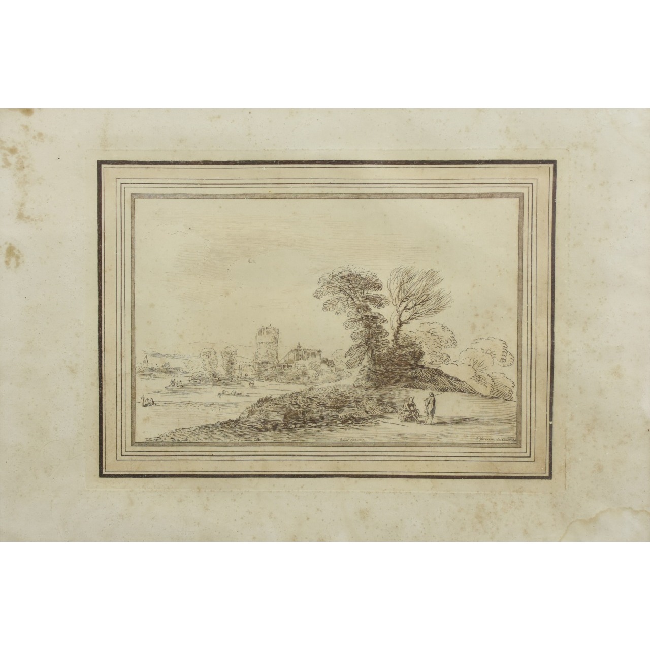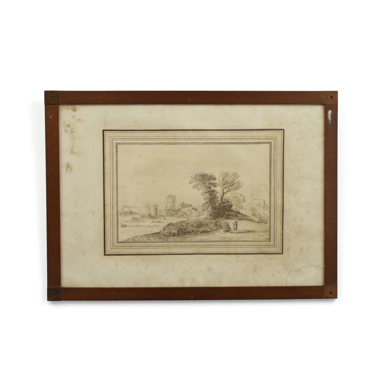 Gravura antiga com tema "Paisagem" com moldura