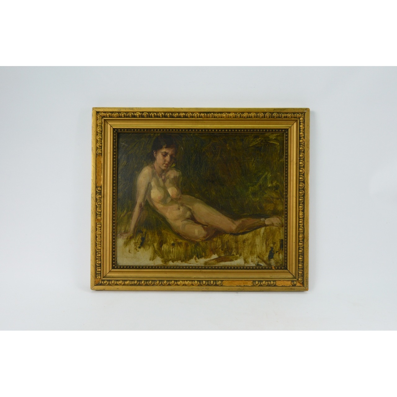 JOAQUIM LOPES (séc. XX) "Descanso do modelo" Óleo sobre tela Obra que integrou a Exposição de Arte Contemporânea dos Artistas do Norte (Maio, 1952) com o nº 20. Emoldurado