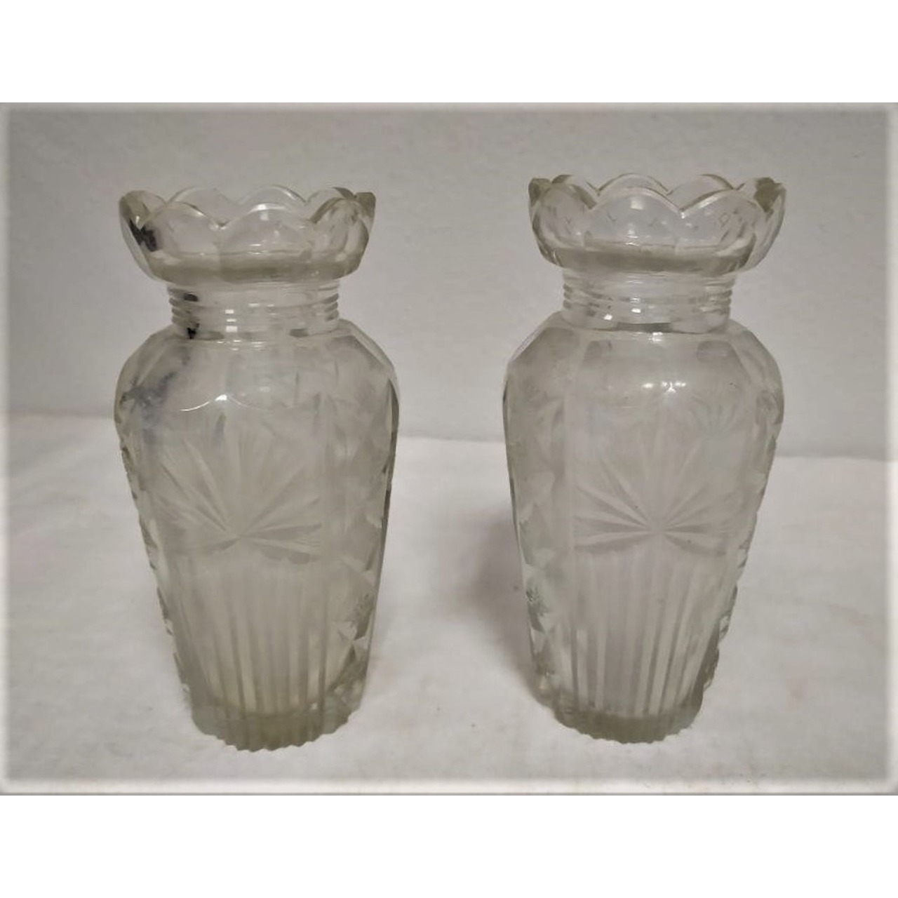 Par de jarras em cristal, estilo Baccarat, com lapidação bisotada estilizada, base estrelada. Século XX.